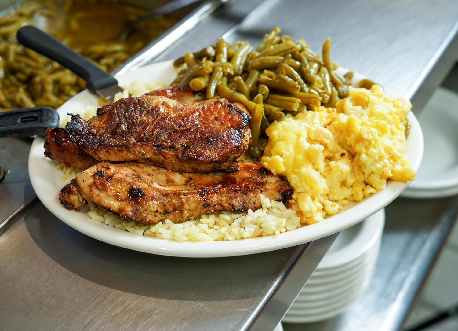 Rice, Peas & Carrots, Lima Beans, Mashed Potatoes, Mac & Cheese, Broccoli Casserole, Green Beans, Pinto Beans, Black Beans, Collard Greens, Slaw, Potato Salad, Cucumber Salad, Banana Pudding, Peaches, Fresh Fruit Cup